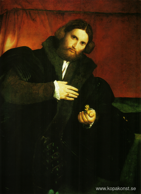 Vi erbjuder dig en hantverksmässig reproduktion på duk av det berömda konstverket 'Porträtt av en gentleman med lejontass' av Lorenzo Lotto, från Reproduktionsmuseet.