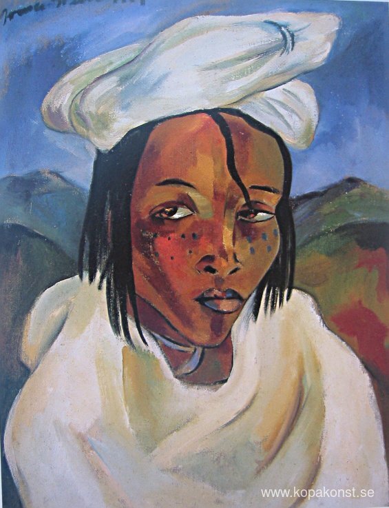 Vi erbjuder dig en hantverksmässig reproduktion på duk av det berömda konstverket 'Porträtt av en Pondo-kvinna' av Irma Stern, från Reproduktionsmuseet.