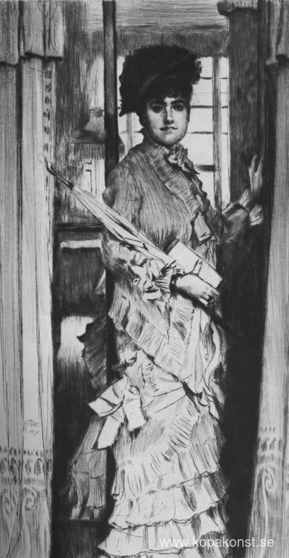 Vi erbjuder dig en hantverksmässig reproduktion på duk av det berömda konstverket 'Porträtt av fröken L.' av James Tissot, från Reproduktionsmuseet.