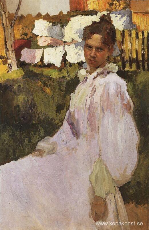 Vi erbjuder dig en hantverksmässig reproduktion på duk av det berömda konstverket 'Porträtt av fru N.F. Ober' av Konstantin Somov, från Reproduktionsmuseet.