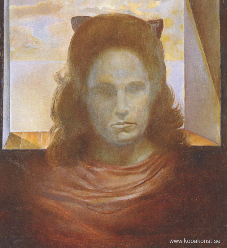 Vi erbjuder dig en hantverksmässig reproduktion på duk av det berömda konstverket 'Porträtt av Gala (Gala mot ljuset)' av Salvador Dali, från Reproduktionsmuseet.