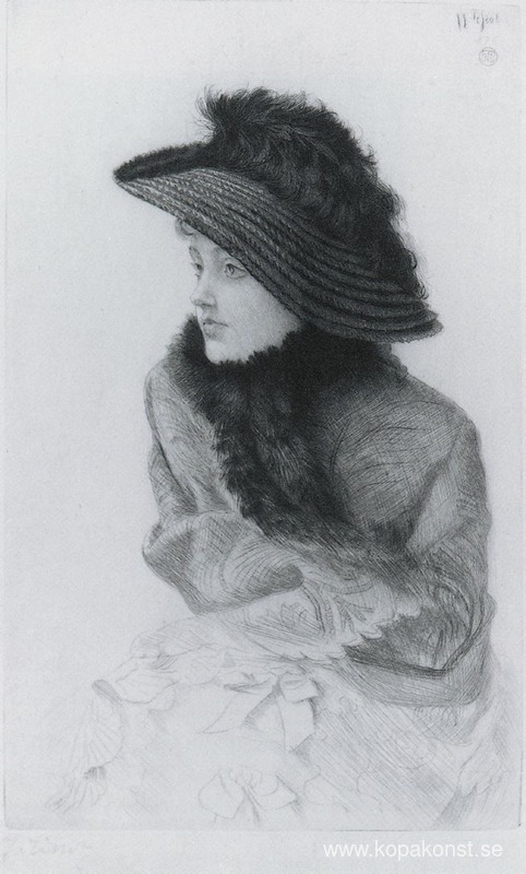 Vi erbjuder dig en hantverksmässig reproduktion på duk av det berömda konstverket 'Porträtt av M.N. (Porträtt av Mrs Newton)' av James Tissot, från Reproduktionsmuseet.