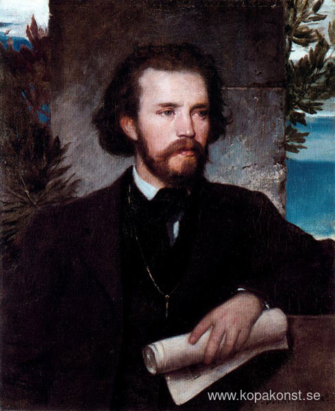 Vi erbjuder dig en hantverksmässig reproduktion på duk av det berömda konstverket 'Porträtt av sångaren Karl Wallenreiter' av Arnold Böcklin, från Reproduktionsmuseet.