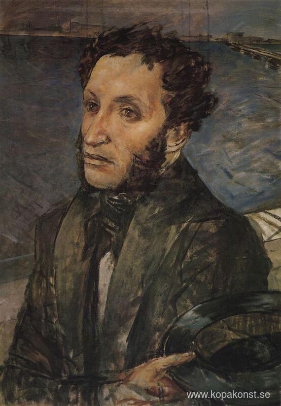 Vi erbjuder dig en hantverksmässig reproduktion på duk av det berömda konstverket 'Pushkin i St Petersburg' av Kuzma Petrov-Vodkin, från Reproduktionsmuseet.