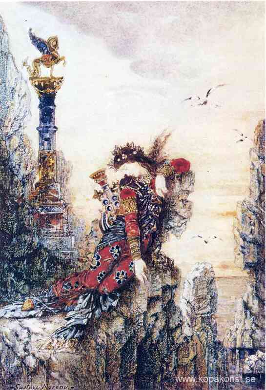 Vi erbjuder dig en hantverksmässig reproduktion på duk av det berömda konstverket 'Sappho on the Rocks' av Gustave Moreau, från Reproduktionsmuseet.