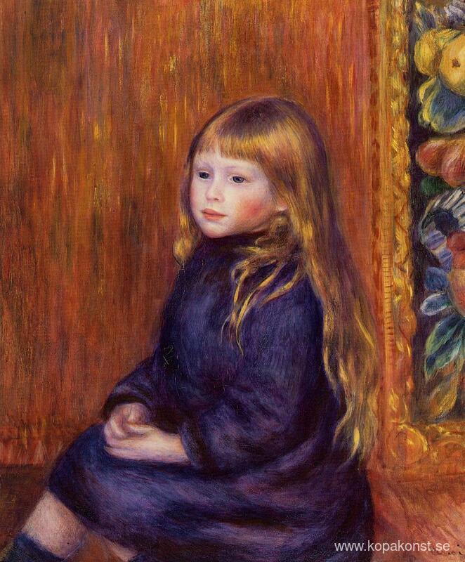 Vi erbjuder dig en hantverksmässig reproduktion på duk av det berömda konstverket 'Sittande barn i en blå klänning' av Pierre-Auguste Renoir, från Reproduktionsmuseet.