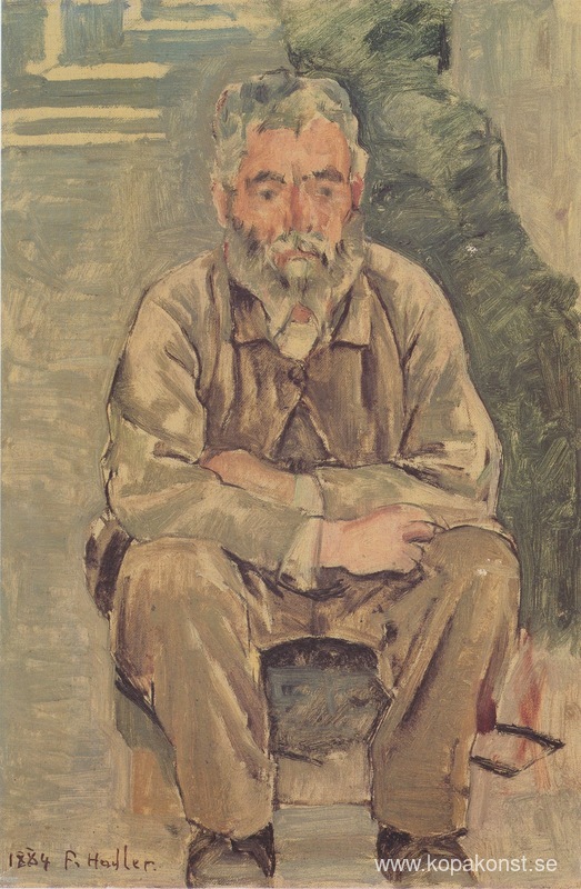 Vi erbjuder dig en hantverksmässig reproduktion på duk av det berömda konstverket 'Sittande skäggig man' av Ferdinand Hodler, från Reproduktionsmuseet.