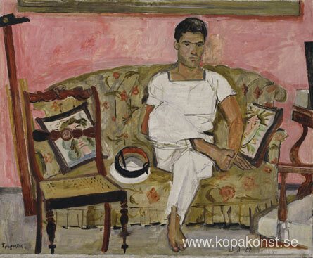 Vi erbjuder dig en hantverksmässig reproduktion på duk av det berömda konstverket 'Sjöman utan skor sitter på soffan ' av Yiannis Tsaroychis, från Reproduktionsmuseet.