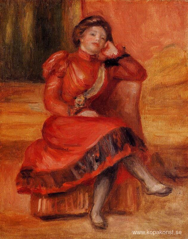 Vi erbjuder dig en hantverksmässig reproduktion på duk av det berömda konstverket 'Spansk dansare i röd klänning' av Pierre-Auguste Renoir, från Reproduktionsmuseet.