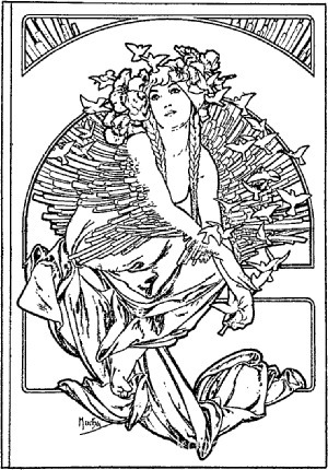 Vi erbjuder dig en hantverksmässig reproduktion på duk av det berömda konstverket 'Täckning för volymen av farmödrar låtar' av Alphonse Mucha, från Reproduktionsmuseet.