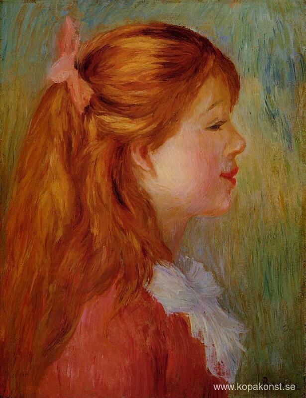 Vi erbjuder dig en hantverksmässig reproduktion på duk av det berömda konstverket 'Ung flicka med långt hår i profil' av Pierre-Auguste Renoir, från Reproduktionsmuseet.
