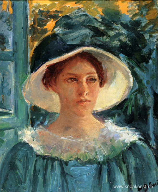 Vi erbjuder dig en hantverksmässig reproduktion på duk av det berömda konstverket 'Ung Kvinna I Grönt Utomhus I Solen' av Mary Cassatt, från Reproduktionsmuseet.