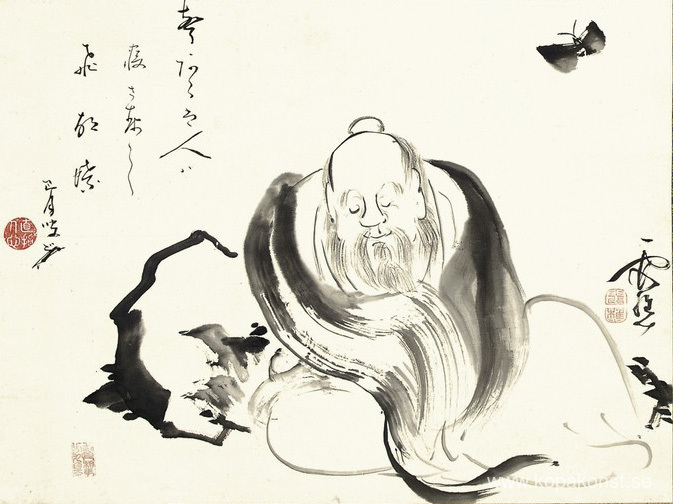 Vi erbjuder dig en hantverksmässig reproduktion på duk av det berömda konstverket 'Zhuangzi drömmer om en fjäril (eller en fjäril som drömmer om Zh' av Ike no Taiga, från Reproduktionsmuseet.