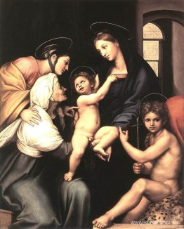 Den heliga familjen med heliga Elizabeth och Johannes