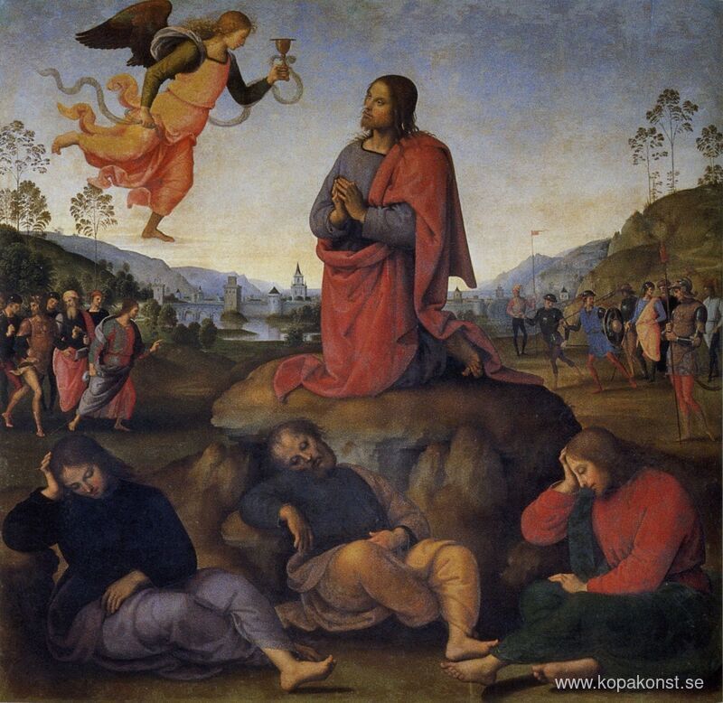 Vi erbjuder dig en hantverksmässig reproduktion på duk av det berömda konstverket 'Ber om en kopp' av Pietro Perugino, från Reproduktionsmuseet.