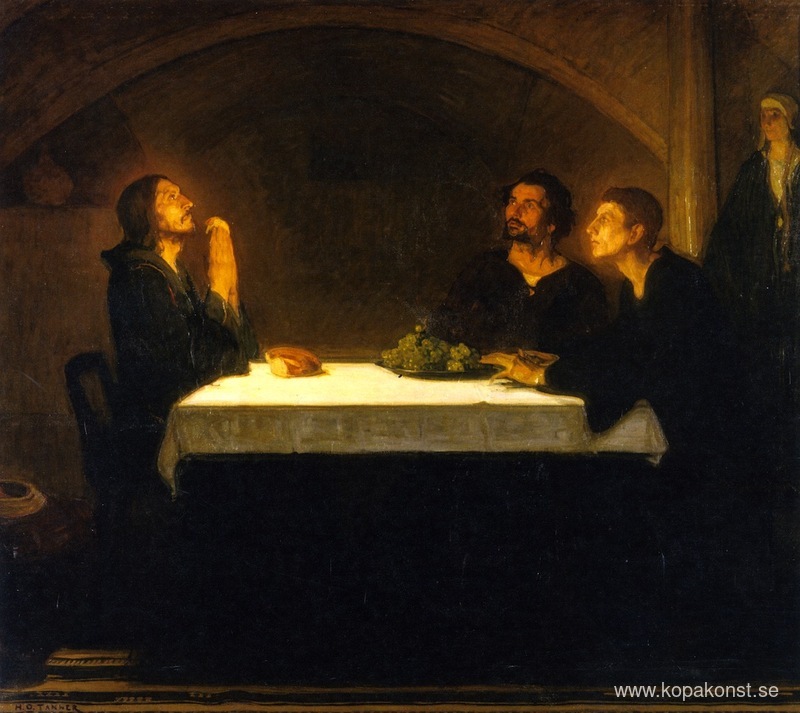 Vi erbjuder dig en hantverksmässig reproduktion på duk av det berömda konstverket 'Emmaus pilgrimer' av Henry Ossawa Tanner, från Reproduktionsmuseet.