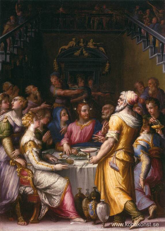 Vi erbjuder dig en hantverksmässig reproduktion på duk av det berömda konstverket 'Giftermål i Kana' av Giorgio Vasari, från Reproduktionsmuseet.