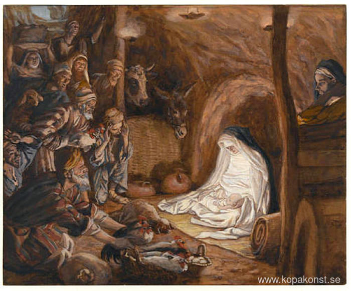 Vi erbjuder dig en hantverksmässig reproduktion på duk av det berömda konstverket 'Herdarnas tillbedjan, illustration för "Kristi liv"' av James Tissot, från Reproduktionsmuseet.
