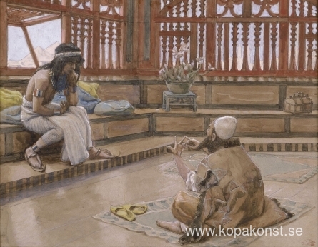 Vi erbjuder dig en hantverksmässig reproduktion på duk av det berömda konstverket 'Joseph samtalar med Juda, hans bror' av James Tissot, från Reproduktionsmuseet.