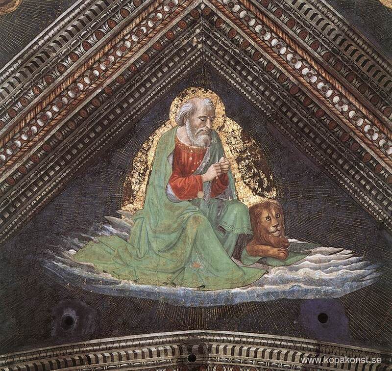 Vi erbjuder dig en hantverksmässig reproduktion på duk av det berömda konstverket 'Markus evangelisten' av Domenico Ghirlandaio, från Reproduktionsmuseet.