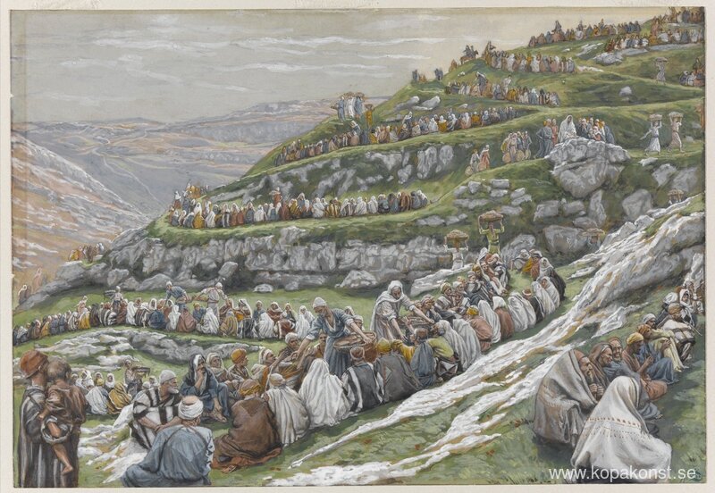 Vi erbjuder dig en hantverksmässig reproduktion på duk av det berömda konstverket 'Miraklet med bröden och fiskarna' av James Tissot, från Reproduktionsmuseet.