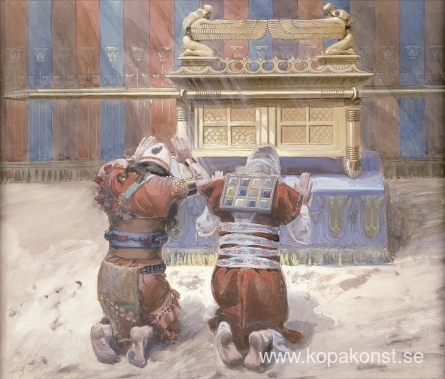 Vi erbjuder dig en hantverksmässig reproduktion på duk av det berömda konstverket 'Moses och Josua i tabernaklet' av James Tissot, från Reproduktionsmuseet.