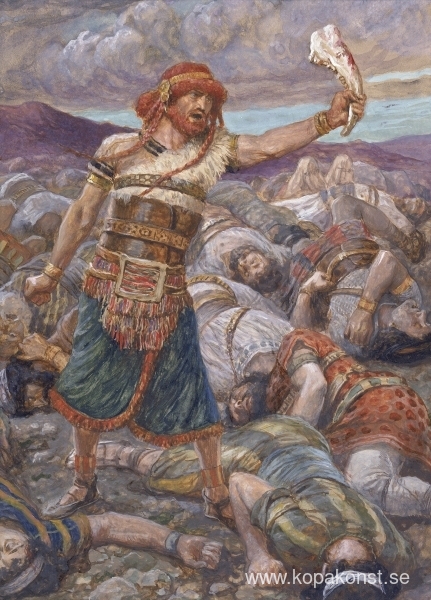 Vi erbjuder dig en hantverksmässig reproduktion på duk av det berömda konstverket 'Simson dödar tusen män' av James Tissot, från Reproduktionsmuseet.