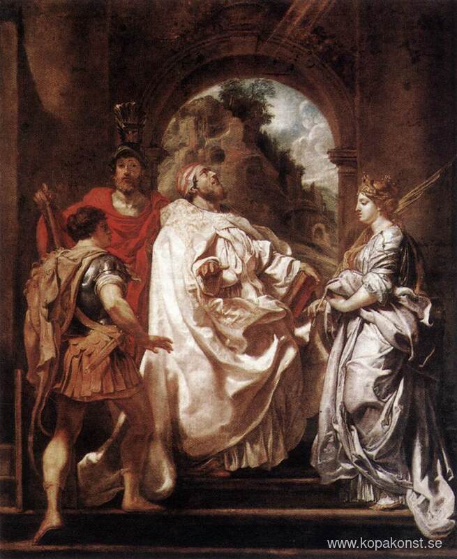 Vi erbjuder dig en hantverksmässig reproduktion på duk av det berömda konstverket 'S:t Gregorius den store med heliga' av Peter Paul Rubens, från Reproduktionsmuseet.