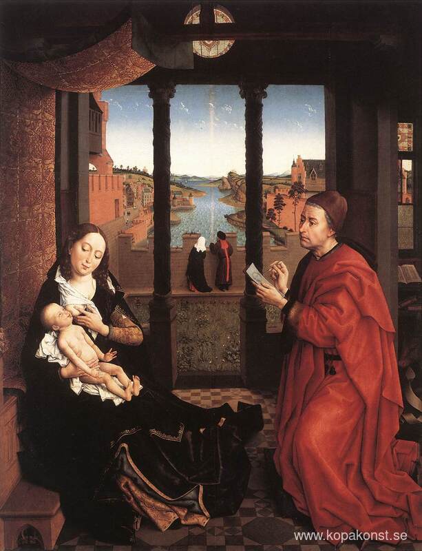 Vi erbjuder dig en hantverksmässig reproduktion på duk av det berömda konstverket 'St Luke ritar ett porträtt av Jungfru Maria' av Rogier van der Weyden, från Reproduktionsmuseet.