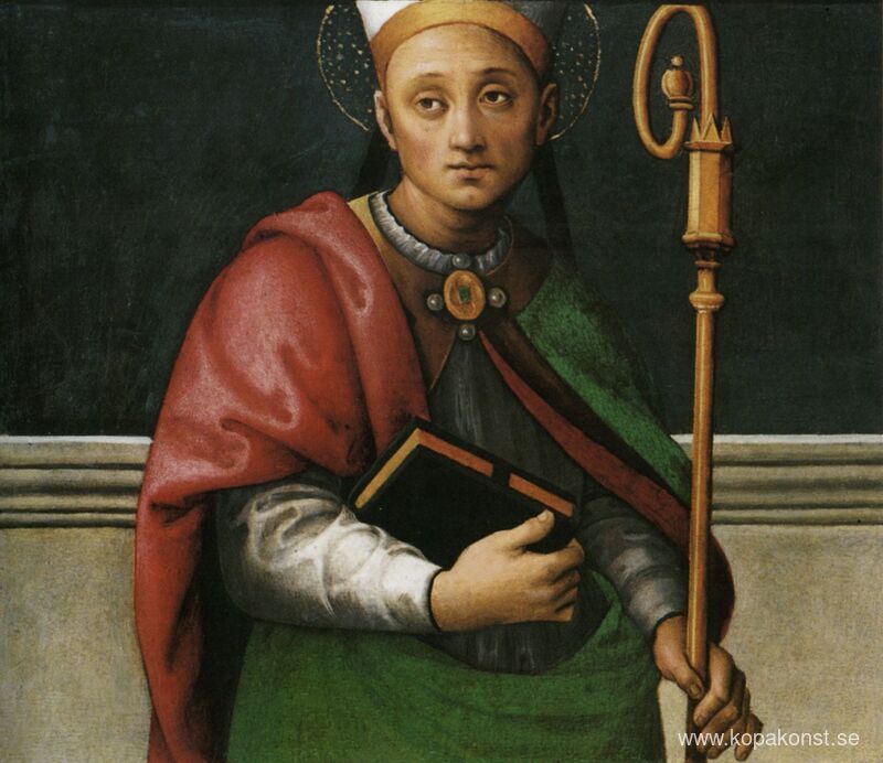 Vi erbjuder dig en hantverksmässig reproduktion på duk av det berömda konstverket 'S:t Peters polyptyk (St. Ercolano)' av Pietro Perugino, från Reproduktionsmuseet.