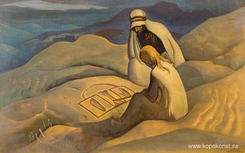 Vi erbjuder dig en hantverksmässig reproduktion på duk av det berömda konstverket 'Tecken på Kristus' av Nicholas Roerich, från Reproduktionsmuseet.
