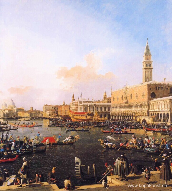 Vi erbjuder dig en hantverksmässig reproduktion på duk av det berömda konstverket 'Venedig, Bacino di San Marco på Kristi himmelsfärdsdag' av Canaletto, från Reproduktionsmuseet.