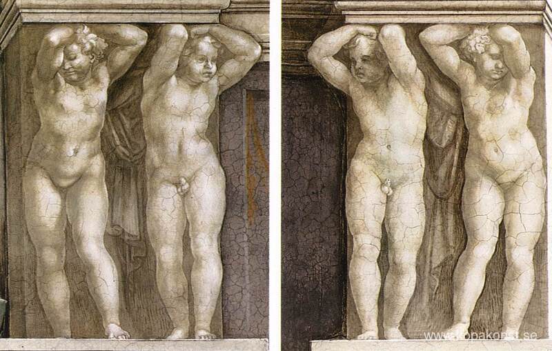 Vi erbjuder dig en hantverksmässig reproduktion på duk av det berömda konstverket 'Putti' av Michelangelo, från Reproduktionsmuseet.