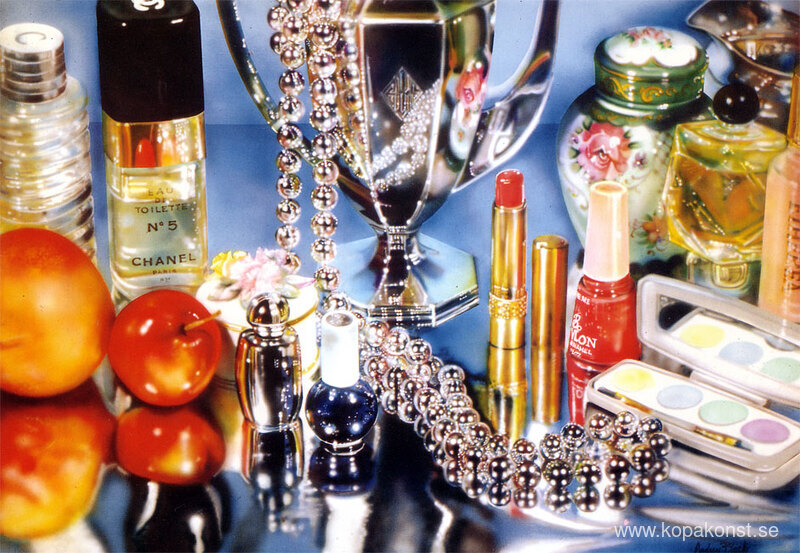 Vi erbjuder dig en hantverksmässig reproduktion på duk av det berömda konstverket 'Chanel' av Audrey Flack, från Reproduktionsmuseet.