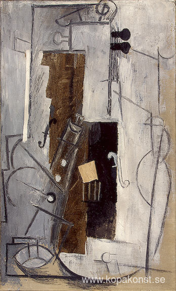 Vi erbjuder dig en hantverksmässig reproduktion på duk av det berömda konstverket 'Klarinett och fiol ' av Pablo Picasso, från Reproduktionsmuseet.