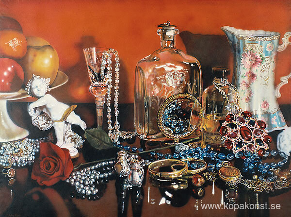 Vi erbjuder dig en hantverksmässig reproduktion på duk av det berömda konstverket 'Snygga frun' av Audrey Flack, från Reproduktionsmuseet.