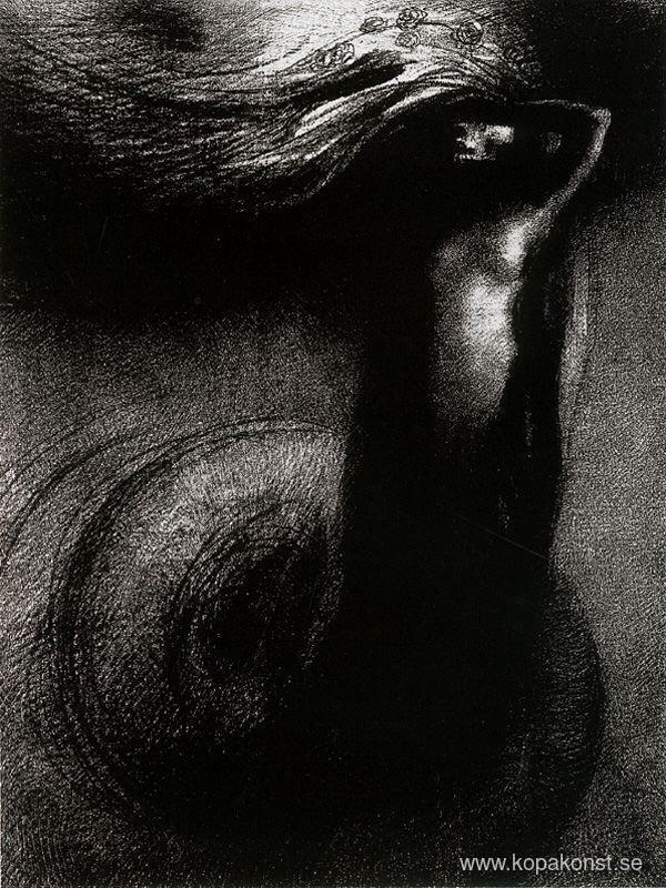 Vi erbjuder dig en hantverksmässig reproduktion på duk av det berömda konstverket 'Döden: Min ironi överträffar alla andra! ' av Odilon Redon, från Reproduktionsmuseet.