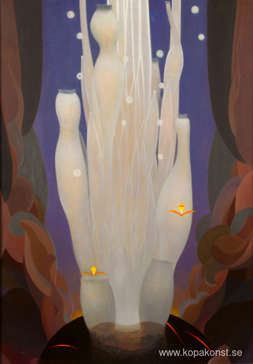 Vi erbjuder dig en hantverksmässig reproduktion på duk av det berömda konstverket 'Eldljud' av Agnes Lawrence Pelton, från Reproduktionsmuseet.