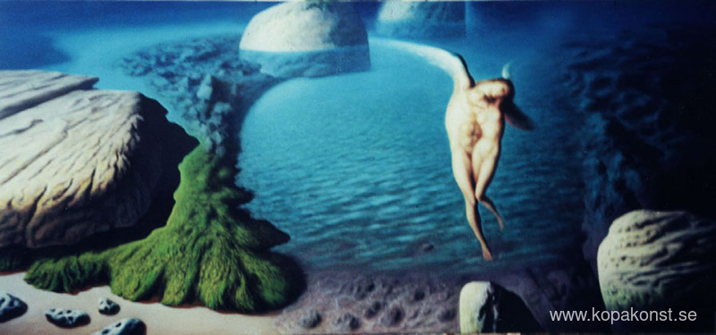Vi erbjuder dig en hantverksmässig reproduktion på duk av det berömda konstverket 'Kärlekens skärgård' av Sabin Balasa, från Reproduktionsmuseet.