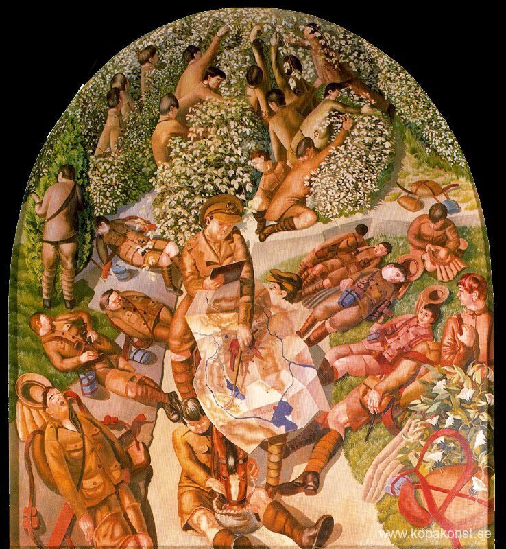 Vi erbjuder dig en hantverksmässig reproduktion på duk av det berömda konstverket 'Kartläsning' av Stanley Spencer, från Reproduktionsmuseet.