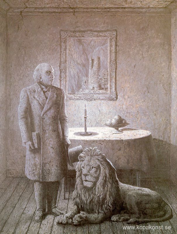 Vi erbjuder dig en hantverksmässig reproduktion på duk av det berömda konstverket 'Minne av en resa' av Rene Magritte, från Reproduktionsmuseet.