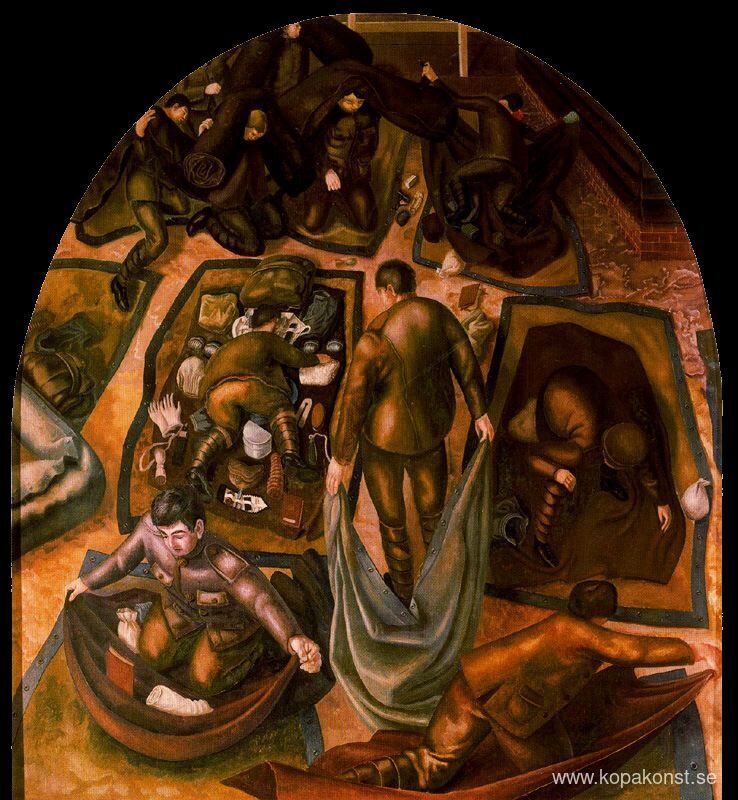 Vi erbjuder dig en hantverksmässig reproduktion på duk av det berömda konstverket 'Satsinspektion' av Stanley Spencer, från Reproduktionsmuseet.