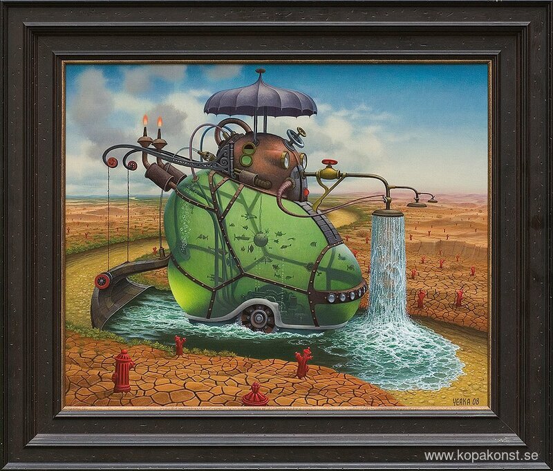 Vi erbjuder dig en hantverksmässig reproduktion på duk av det berömda konstverket 'Vattumannen' av Jacek Yerka, från Reproduktionsmuseet.