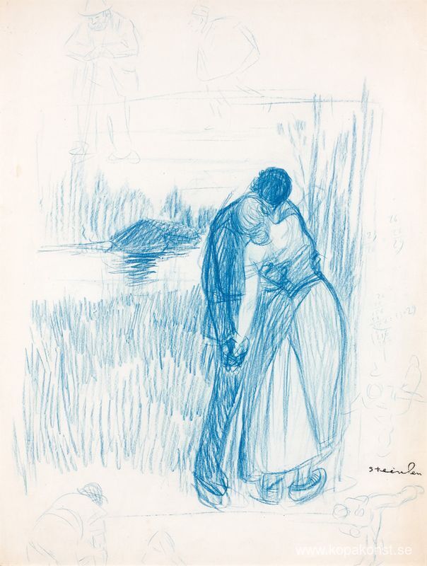 Vi erbjuder dig en hantverksmässig reproduktion på duk av det berömda konstverket 'Au Bord de L'Eau Preliminär ritning ' av Theophile Steinlen, från Reproduktionsmuseet.