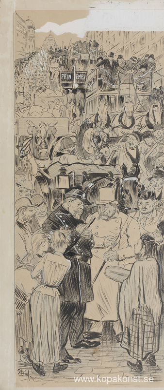 Vi erbjuder dig en hantverksmässig reproduktion på duk av det berömda konstverket 'L'Encombrement ' av Theophile Steinlen, från Reproduktionsmuseet.