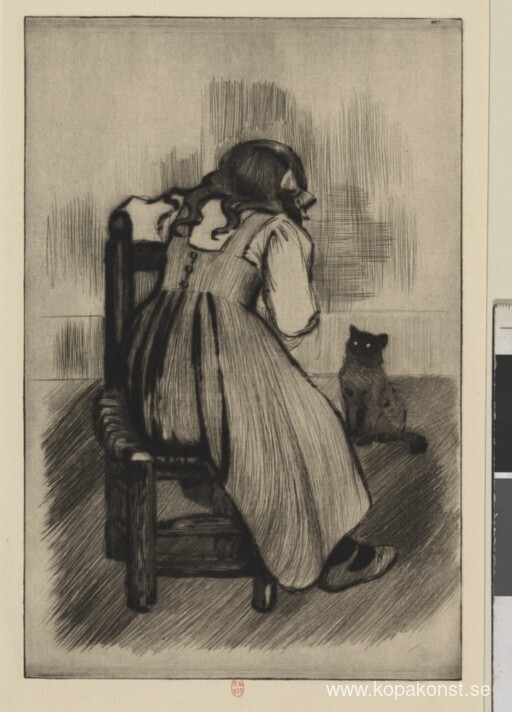 Vi erbjuder dig en hantverksmässig reproduktion på duk av det berömda konstverket 'Liten flicka med katt' av Theophile Steinlen, från Reproduktionsmuseet.
