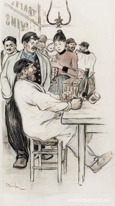 Vi erbjuder dig en hantverksmässig reproduktion på duk av det berömda konstverket 'På bistron' av Theophile Steinlen, från Reproduktionsmuseet.