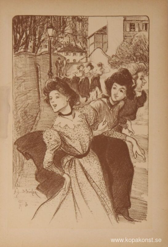 Vi erbjuder dig en hantverksmässig reproduktion på duk av det berömda konstverket 'Tre midinetter' av Theophile Steinlen, från Reproduktionsmuseet.