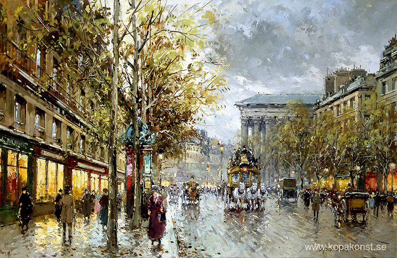 Vi erbjuder dig en hantverksmässig reproduktion på duk av det berömda konstverket 'Boulevard de la Madeleine' av Antoine Blanchard, från Reproduktionsmuseet.