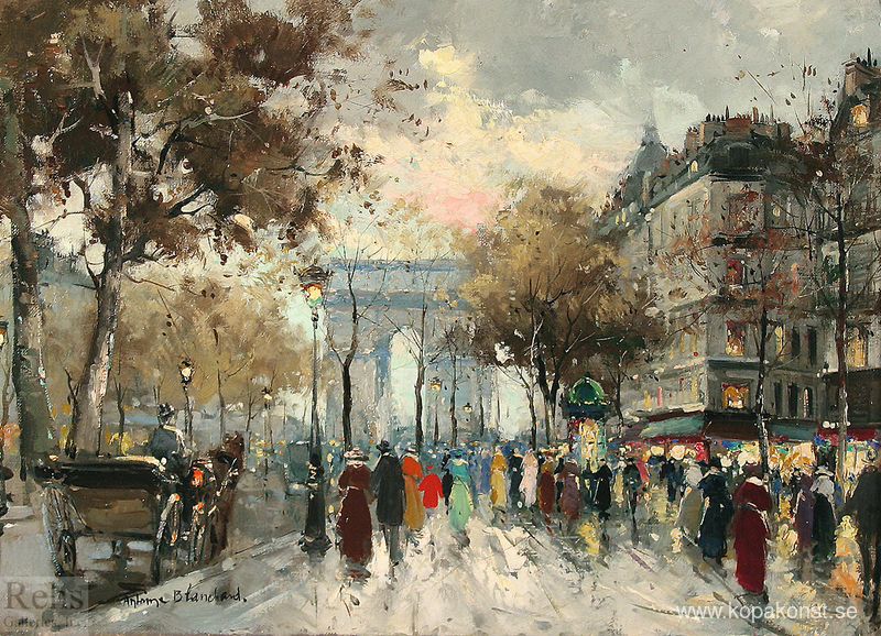 Vi erbjuder dig en hantverksmässig reproduktion på duk av det berömda konstverket 'Champs Elysees' av Antoine Blanchard, från Reproduktionsmuseet.
